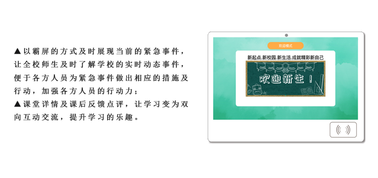 智慧班牌是智慧校園建設不斷發展的產物,是教育信息化改革的部分體現。它針對教改需求和學校使用場景的綜合考慮融合了教學需求的方方面面,加入了更多的實用功能,讓班牌更加靈活豐富。智慧班牌是以云平臺、云服務器為基礎,采用區域實施管理,實現大數據、資源共享,有利于學校信息化建設和交流,也更易操作管理、數據更安全可靠,有效降低學校使用成本;平臺系統不斷優化升級,版本升級云端控制,更貼合學校教育改革需求。